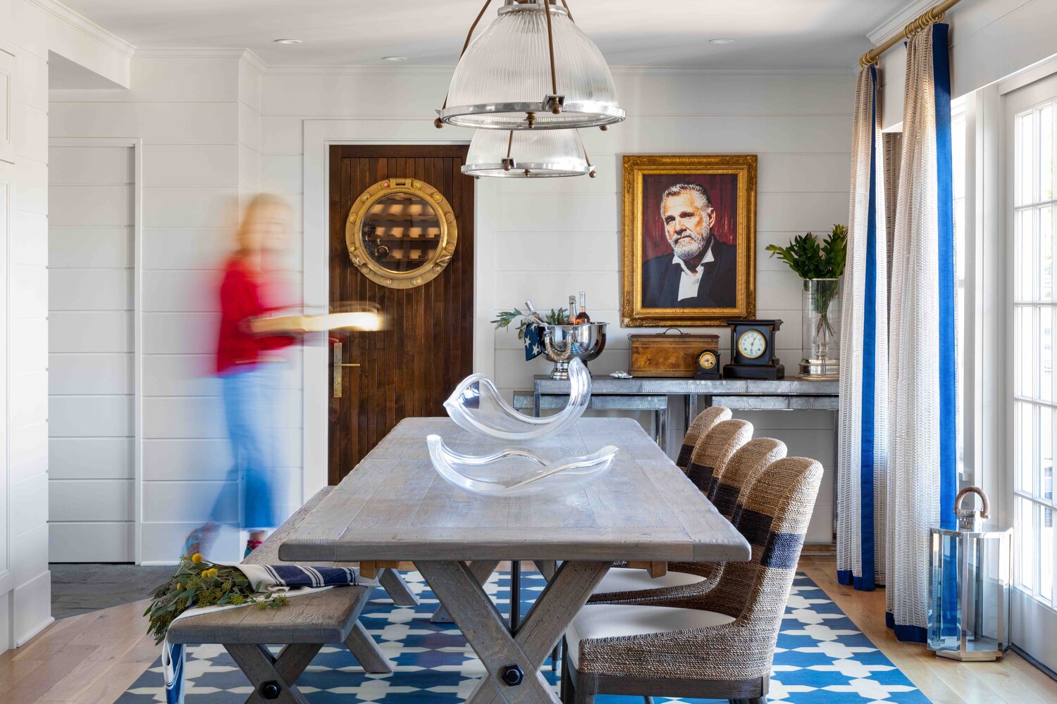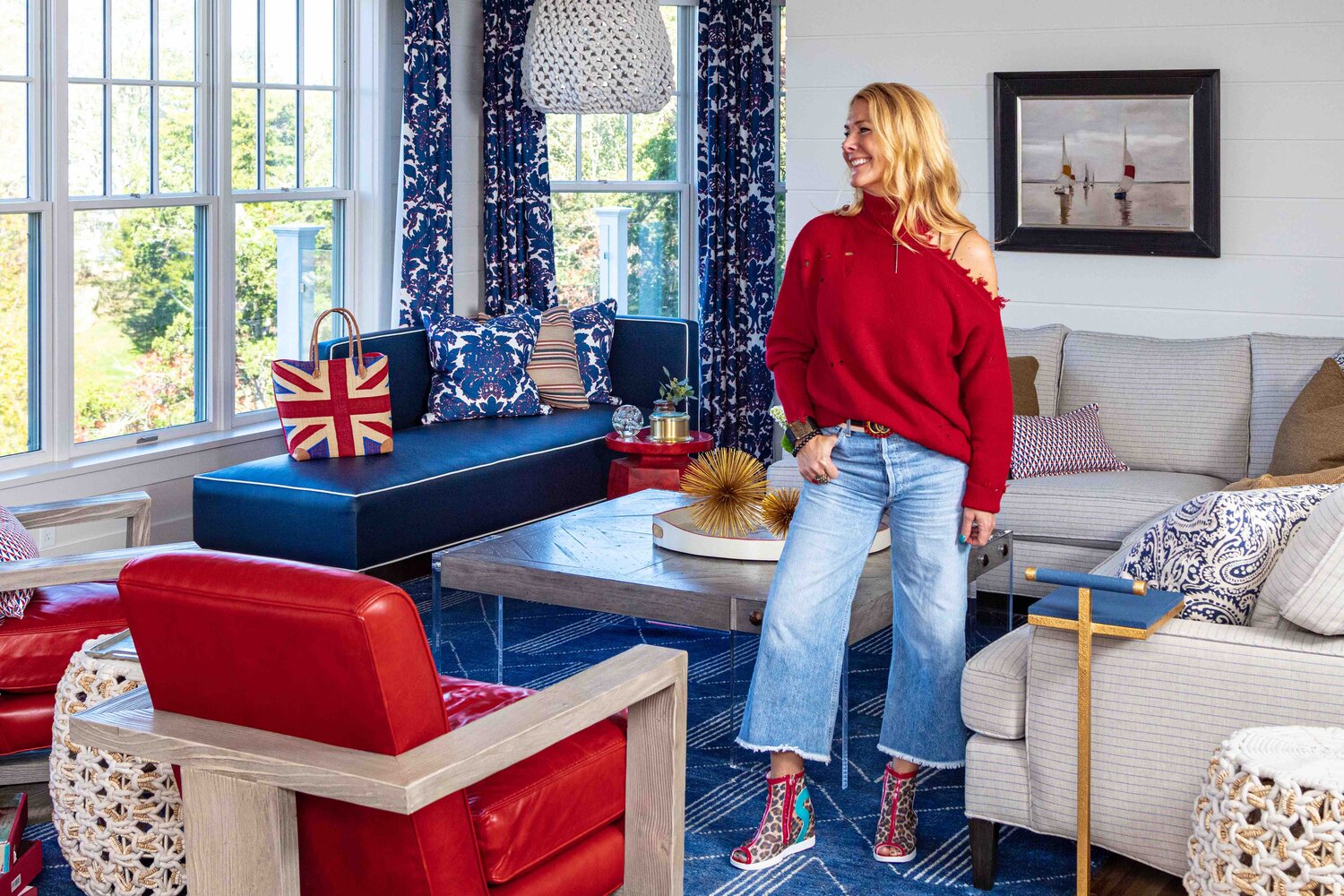 The result of Kellie Burke’s work on the Red, White, and Blue project is a beautiful and inviting space that perfectly captures the essence of beachside living with a fun and whimsical twist. The use of bold patterns, textures, and colors creates a playful and energetic atmosphere that is perfect for enjoying time with family and friends. Whether you’re relaxing in the sunroom or cooking in the kitchen, every inch of this space has been thoughtfully designed to create a comfortable and stylish home.