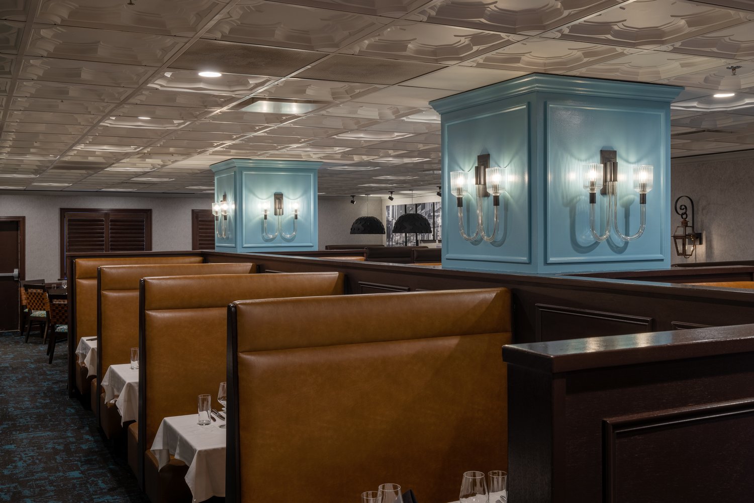 One of the most notable features of Kellie Burke’s Ruth’s Chris Steak House interior design project is her use of rich textures and materials. From plush velvet seating to warm wood finishes, every element of the restaurant’s design is carefully chosen to create a warm and inviting atmosphere. Kellie’s attention to detail extends to the lighting, which is expertly designed to highlight the restaurant’s best features and create a mood of relaxed sophistication.